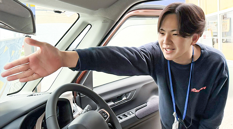 ご来店したお客様のニーズやご希望に沿ったお車を提案します。 「どんなカーライフを送り、どんな未来を描ているか」 「どんな利用目的や家族構成なのか」 といった一人ひとりのライフスタイルや目的をお伺いして、お客様が描く未来を乗せて運ぶために最適な一台をご提案するお仕事です。